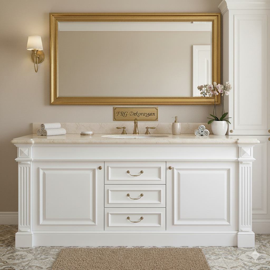 Banyonuzda zamansız şıklık arayanlara. FRG Dekorasyon, klasik banyo dolaplarıyla estetiği ve fonksiyonelliği bir araya getiriyor. Mekanınızı kusursuz bir şıklıkla tamamlayın.